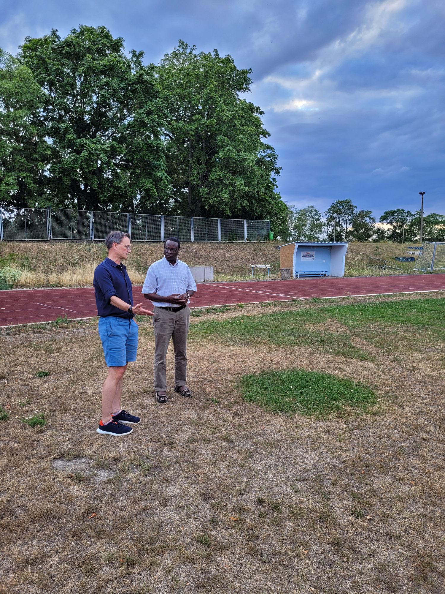 Und natürlich durfte die Schilderung der katastrophalen Bewässerungssituation auf der Sportanlage nicht fehlen, die durch die willkürliche Kappung der Brauchwasserleitung von der Saale zum Sportplatz im Zuge der Sanierung der Riveuferpromenade entstanden ist. Auch wenn mittlerweile eine provisorische Zuleitung errichtet wurde, die nach etlichen vergeblichen Versuchen seit heute auch funktioniert, sind die Schäden auf dem Sportplatz bereits beträchtlich. Die Hilflosigkeit unseres Vereins (trotz massiver Bemühungen) gegenüber dem (Nicht)Handeln verschiedener Bereiche der Stadtverwaltung wurde sehr detailliert geschildert und mit sehr großer Verwunderung durch unsere Gäste aufgenommen. Das Versprechen der Vertreter der SPD-Fraktion, von politischer Seite bei der Verwaltung dranzubleiben und nachzuhaken nehmen wir sehr gerne an.